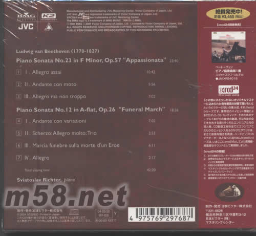 Sviatoslav RICHTER Beethoven Appassionata and funeral March[熱情]&[葬送]日本版XRCD(m58.net) 請點看產品正、背面大圖 日本版XRCD古典發燒系列共有十數個產品