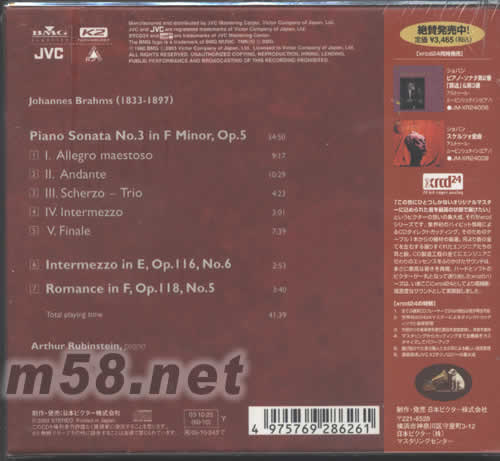 BRAHMS布拉姆斯 SONATA IN F MINOR日本版XRCD(m58.net) 請點看產品正、背面大圖 日本版XRCD古典發燒系列共有十數個產品 錄音:1959年
