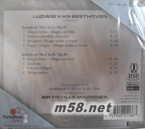 貝多芬第1和2號交響曲SACD(m58.net) 指揮:SIR NEVILLE MARRINER 《貝多芬第1/2號交響曲》是貝多芬九大交響曲中的最適合古樂版本體現的兩首交響曲,有人說它很有海頓和莫扎特風格的影子。在聽了貝多芬第三到第九交響樂后回過頭來再聽這兩首交響樂,更覺得貝多芬的寫作風格真的令人琢磨不透。馬里納爵士指揮圣馬丁室內樂團演奏。