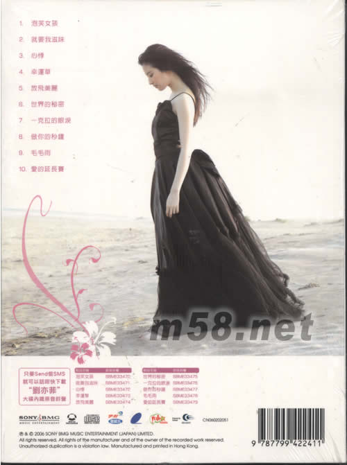 劉亦菲-首張同名專輯(香港版)(m58.net) 如果你看過《仙劍奇俠傳》《天龍八部》以及《金粉世家》那么你就會記住劉亦菲年輕的臉。 稚氣未脫,皮膚細嫩得跟瓷娃娃似的,尤其是演起《仙劍奇俠傳》中的趙靈兒——除了下巴與游戲中的不太像,其它可以說,神似,清純得不得了,美麗得不得了,想想靈兒臨終時強撐不死說的一段對白,至今令人眼眶發紅。 演而優則唱,劉亦菲于2005年8月正式簽約日本索尼音樂公司,一直接受聲樂和舞蹈訓練。這張國語唱片將走英倫、流行及田園等不同風格,唱片專輯封面是由日本著名攝影師在神秘的小島上拍攝。 主打歌「放飛美麗」抒發健康和美麗的心情,健康是最美麗的,和聽眾分享她的廣闊視野。除了這首流行的廣告曲外,專輯也收錄了新歌「心悸」。