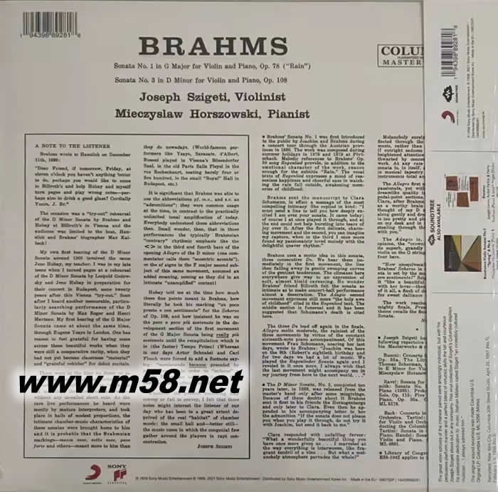 勃拉姆斯:小提琴奏鳴曲 VIOLINIST MIECZYSLAW 黑膠專輯背面圖片