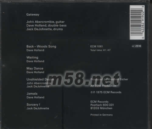 BACK-WOODS SONG DAVE HOLLAND WAITING DAVE HOLLAND MAY DANCE DAVE HOLLAND UNSHIEIDED DESIRE JOHN ABERCROMBIE JACK DEJOHNETTE JAMALA DAVE HOLLAND DORCERY I JACK DEJOHNETTE