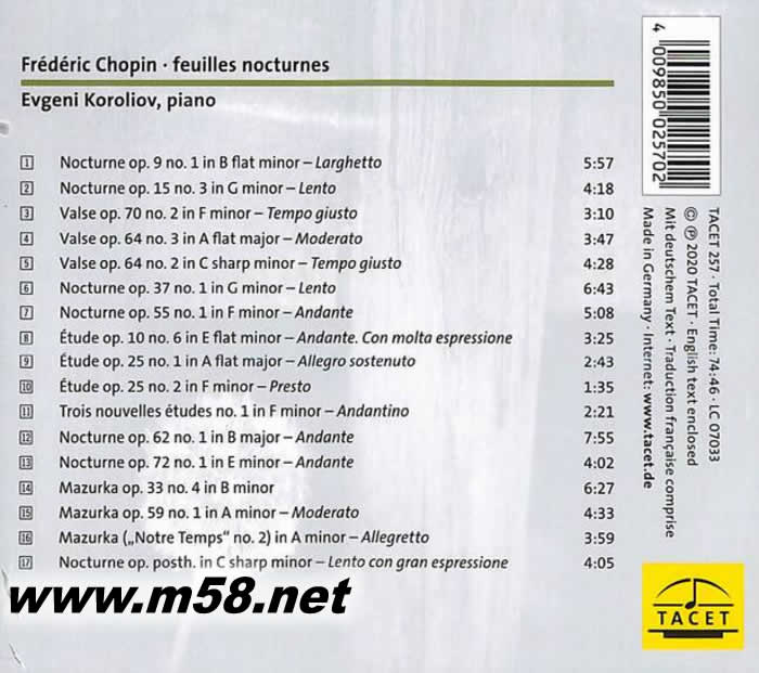 柯洛里奧弗 肖邦鋼琴作品集Frederic Chopin : Feuilles Nocturnes(m58.net)
