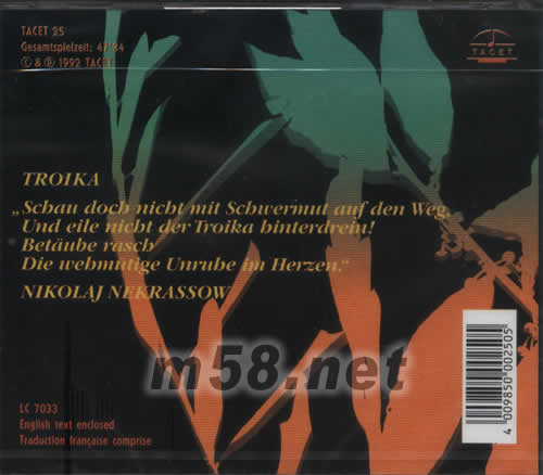 TROIKA SCBAU DOCB NICBT MIT SCBWERMUT AUF DEN WEG,UND EILE NICBT DER TROIKA BINTERDREIN! BETAUBE RASCB DIE WEBMUTIGE UNRUBE IM HERZEN。 NIKOLAJ NEKRASSOW