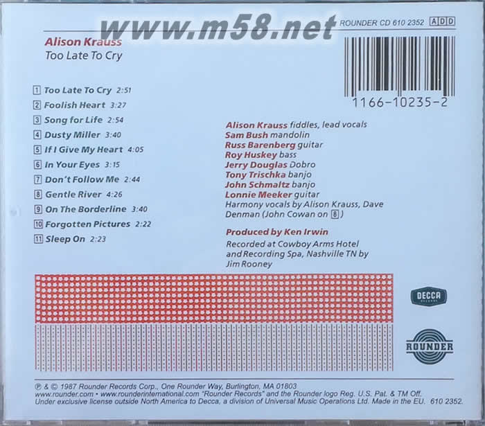 TOO LARE TO CRY 艾莉森克勞斯 遲來的哭泣專輯背面圖片
