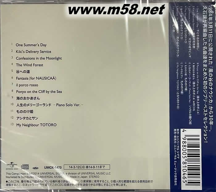 價(jià)格為估,以實(shí)到貨為準(zhǔn)! GHIBLI BEST STORIES 日本版(m58.net) 超靚聲日本版,距離1984年3月11日公開(kāi)上演的動(dòng)畫電影「風(fēng)之谷」到現(xiàn)在已經(jīng)30年。 音樂(lè)大師久石讓個(gè)人首張重新編整吉卜力動(dòng)畫經(jīng)典音樂(lè)精選輯! 30年的光陰,久石讓:從我開(kāi)始與宮崎先生一起工作,轉(zhuǎn)眼已經(jīng)過(guò)了30年的光陰。其實(shí)應(yīng)該尊稱他為宮崎駿導(dǎo)演才對(duì),但或許是他開(kāi)朗爽快的個(gè)性,讓身邊的人都會(huì)不甶得叫他宮崎先生、更親近一點(diǎn)的人甚至?xí)詫m先生來(lái)昵稱他。 從『風(fēng)之谷』起至最新作品『起風(fēng)了』為止共10部作品,在制作時(shí)每部都有獨(dú)自的故事和掙扎、以及真誠(chéng)的喜悅,在此我并不打算一一贅述這些插曲;但能讓世界上的人觀賞、讓音樂(lè)被聽(tīng)到這件事,對(duì)宮崎先生的作品應(yīng)該是多少有了些貢獻(xiàn),為此我感到安心了不少,同時(shí)也打從心里感謝著。 這張專輯中,集合了這30年的光陰中曾制作收錄在的個(gè)人專輯中、并為宮崎先生的電影所譜寫的歌曲們。收錄的歌曲是以鋼琴為主要樂(lè)器、并以專輯的概念為主軸重新混音制作的,因而和電影原聲帶中收錄的有所不同。然而無(wú)論是以何種方式詮釋(管弦樂(lè)、鋼琴獨(dú)奏、或是走在街道上的孩子哼唱的旋律)在每首歌曲中都能窺見(jiàn)宮崎先生和我。能完成這些深植人心的作品,當(dāng)然憑我一己之力是無(wú)法辦到的,多虧了許多人士的支持參與,尤其是鈴木敏夫先生更扮演了不可或缺的角色。 由于我向來(lái)不喜歡回顧遇往,本來(lái)并不想制作像這樣的精選集,在唱片公司的強(qiáng)力要求之下(因?yàn)樽罱](méi)有推出個(gè)人專輯)才決定推出。 然而,細(xì)細(xì)聆聽(tīng)完成的這張專輯,發(fā)覺(jué)到它扎扎實(shí)實(shí)建構(gòu)出獨(dú)自的世界,使我能夠肯定這張作品存在的價(jià)值。感謝多位相關(guān)的人員,若沒(méi)有他們就無(wú)法完成這張作品。 于是我,從鋼琴音符和音符之間的沉默,乘著30年光陰的河流,看見(jiàn)宮崎先生的臉漸漸浮出笑容而也不由得莞爾了。