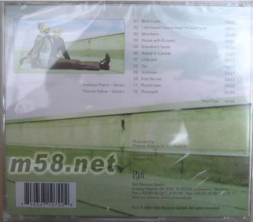1、BLUE IN YOU 2、I STILL HAVEN‘T FOUND WHAT I’M LOOKING FOR 3、MOUNTIANS 4、HOUSE WITH 6 ROOMS 5、GRANDMA‘S HANDS 6、NAKED IN A JACKET 7、LITTLE DOLL 8、TAXI 9、UNKNOWN 10、KISS THE RAIN 11、PURPLE HAZE 12、OVERJOYED