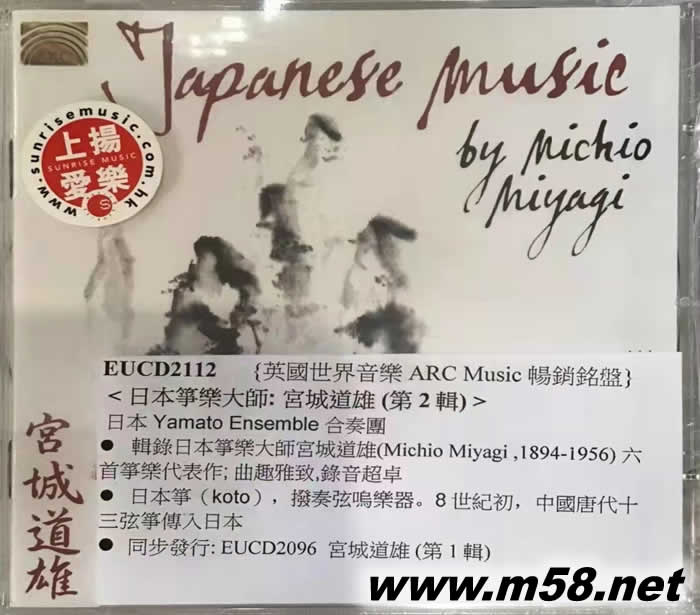 日本箏樂大師: 宮城道雄 (第2輯)Japanese Music by Michio Miyagi Vol. 2(m58.net) 輯錄日本箏樂大師宮城道雄(Michio Miyagi ,1894-1956) 六首箏樂代表作; 曲趣雅致,錄音超卓 日本箏(koto),撥奏弦嗚樂器。8世紀初,中國唐代十三弦箏傳入日本 同步發行: EUCD2096 宮城道雄 (第1輯)