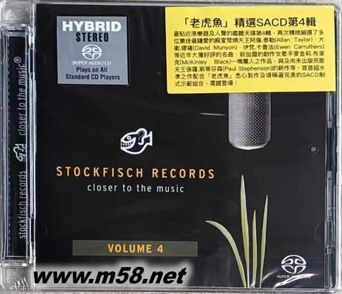 老虎魚精選SACD CLOSER TO THE MUSIC 第四輯 SACD(m58.net) 萬眾期待的老虎魚唱片年度精選輯又來了!此一系列不僅是老虎魚一年一度的音樂精華,更是老虎魚一路走來、始終如一「更貼近音樂」(closer to the music)的具體實踐。除了收錄亞倫.泰勒、保羅.史帝文生、尤金.羅佛洛、大衛(wèi).慕楊、保羅.歐布里恩、麥可.薛里爾夫等老虎魚招牌歌手與演奏家的全新作品之外,還加入了今年才加盟老虎魚的實力派創(chuàng)作女歌手麥金莉.布萊克所推出的作品「乞丐、傻子與小偷」中的柔情吟唱《我所要的》與從未曝光之作《我的鉆石》。另外還有德國女歌手卡嘉.薇克爾的《你今晚的樣子》、德國民謠三人組「斑馬夏季風」演唱傳統(tǒng)歌謠《小小的野鳥》,以及吉他手拉夫.伊倫伯格演奏的《光波》與《墜落》等即將在來年登場之全新專輯中的精彩演出。專輯最后以藍色室內(nèi)樂團(BCQ)演奏融合爵士大師奇克.柯瑞亞(Chick Corea)創(chuàng)作的兩首「兒童之歌」結(jié)尾,不但展現(xiàn)出樂手絕佳的演奏水準,更是老虎魚出神入化錄音絕技之最佳示范! 這次的「老虎魚精選第四輯」同樣是由老虎魚的老板Gunter Pauler擔任錄音師與製作人,王牌錄音師Hans-Jorg Maucksch擔任CD層與SACD層的母帶處理,全程以B&W 801D鉆石高音喇叭做為鑑聽標準,帶給您18首不可多得的精彩曲目、超過70分鐘的極致音樂饗宴!