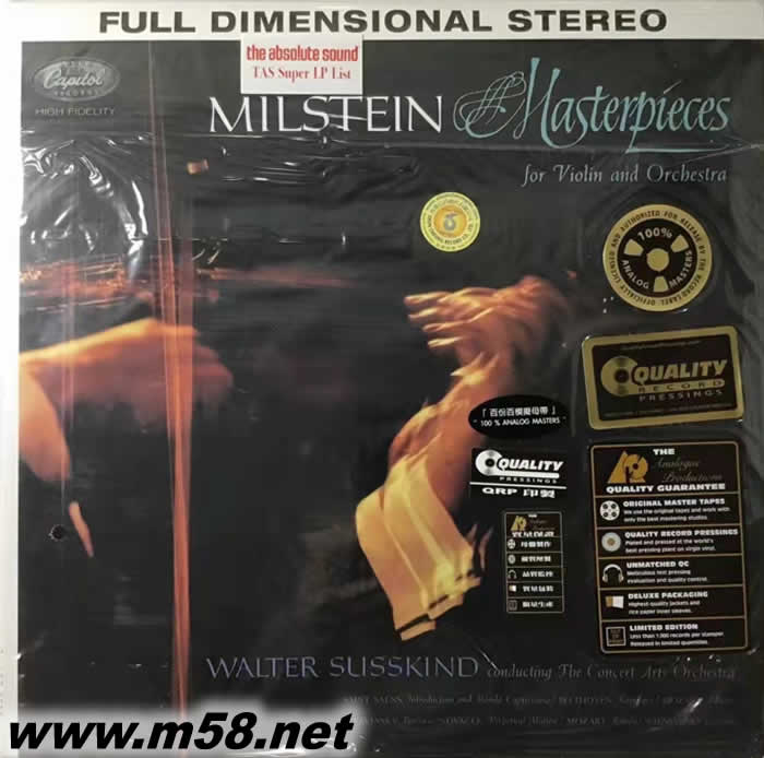 Masterpieces For Violin And Orchestra 小提琴與管弦樂杰作選 黑膠(m58.net) 小提琴:米爾斯坦 Nathan Milstein 指揮:蘇斯金 Susskind 演奏藝術管弦樂團 The Concert Arts Orchestra ★ 有「小提琴貴族」封號、以巴哈作品聞名的烏克蘭裔演奏名家與管弦樂團的罕見銘錄! ★ 作品橫跨古典至浪漫主義后期,功力非凡!