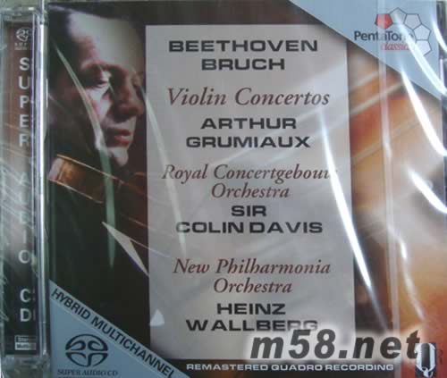 貝多芬:D大調小提琴協奏曲電器布魯赫小提琴協奏曲 SACD(m58.net) 《貝多芬:D大調小提琴協奏曲》;《布魯赫小提琴協奏曲》;由著名”學院派”小提琴大師格魯米歐演奏。格魯米歐的小提琴風格典雅端莊,大氣不失高貴風度,對作品細膩挖掘很是在行。科林.戴維斯指揮皇家愛樂樂團演奏;瓦里伯格指揮新愛樂樂團聯合演出;SACD巨獻天王碟!