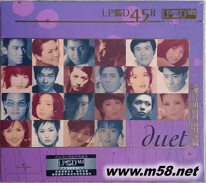 極品對唱篇 (LPCD45 II) 男女對唱(m58.net) 封套與碟片均印有 相同獨立編號1000張 全球限量發行 售完即止 這片“極品對唱篇”,將由遠至1980年,近至2002年的十七首二人男女合唱,不同情緒的合唱情歌,乾乾凈凈地再度在大家耳邊響起。從1980年闕正杰與雷安娜合唱的人在旅途灑淚時,乃至2002年張學友與梅艷芳合留的相愛狠難,可以話跨越兩代半甚至三代的歌迷,確是戚觸良多,正是覆蓋了由我們對情愛似懂非懂的歲月,到今日步入中年人生最重要的一段時光!在碟上那十七首合唱情歌之中,或有伴著你我發豆芽蘿、走過菁蔥歲月、伴著我們成長的,經歷不同片段,叫我們懷緬的歌曲,重新帶到大家耳邊。