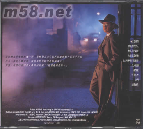 1、壯志豪情 2、你是我的女人 3、無名份的結束 4、永遠都深愛你 5、LAWMAN(執法者) 6、烈火街頭 7、豪情夜 8、仍是任性 9、決斗 10、紅塵歲月