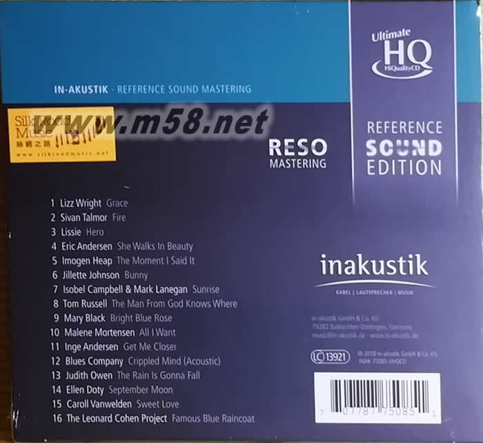 1. Lizz Wright - Grace 2. Sivan Talmor - Fire 3. Lissie - Hero 4. Eric Andersen - She Walks In Beauty 5. Imogen Heap - The Moment I Said It 6. Johnson Jillette - Bunny 7. Isobel & Lanegan, Mark Campbell - Sunrise 8. Tom Russell - The Man From God Knows Where 9. Mary Black - Bright Blue Rose 10. Malene Mortensen - All I Want 11. Inge Andersen - Get Me Closer 12. Blues Company - Crippled Mind (Acoustic) 13. Judith Owen - The Rain Is Gonna Fall 14. Ellen Doty - September Moon 15. Caroll Vanwelden - Sweet Love 16. The Leonard Cohen Project - Famous Blue Raincoat