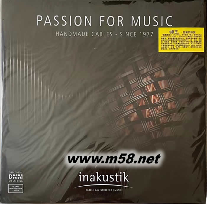 線王-音樂的熱誠 Passion For Music inakustik 45轉 雙黑膠(m58.net) 1. 從1977年開始,有線王之稱的德國“原音”公司(in-akustik)以制造高質素的專業音響接線馳名于世,同時其錄音制作亦以極高嚴格要求見稱,軟、硬體產品經常有緊密及互動性的活動和項目以配合市場宣傳推廣的目的,冀能得到相得益彰的效果。 2. 繼‘線王-聲效鑑試盤(in-akustik Soundcheck)’和‘音準對比測試鑑聽(Reference Sound Check)’兩張鑑試專輯獲得空前成功,口碑載道,“德國原音”再接再厲,精心炮制最新一輯鑑聽盤‘線王-音樂的熱誠(Passion For Music - inakustik)’以提供追求完美音質和音效的“發燒友”用作測試其音響設備特別是導線的表現,同時亦能欣賞令人回味無窮的美麗樂曲。 3. 專輯精挑了十四首錄音技術優異,演唱和演奏者表現出色,旋律優美的樂曲。這些樂曲同時亦能鑑聽和測試器材設備的中、高、低音,空間感,解像度,動態范圍,音場的平行和人聲及各種樂器聲的表現和效率等,但音樂欣賞價值極高。 4. 先進優秀的錄音技術,配合自然真實,極高水平的演唱和演奏,這鑑定盤是科技與藝術的優越之作。加上以45轉180克雙黑膠盤為載體,直刻金屬母盤(Direct Metal Mother)由發燒界另一巨擘“老虎魚”負責制作,展現前所未有的聲音美感,效果更趨完美。