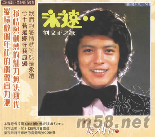 若是你在我身邊(最劉行1)(m58.net) 今生若是你在我身邊 我們的感情就等于是永遠 縱橫數個年代的偶像實力派 抒情與動感的魅力無法取代 雙封面設計 樂迷可自行更換 本碟錄音采用dcs 954機 經24bit Format特別處理,加上128倍超頻取樣 呈現最精密細致的音頻訊號CD錄音