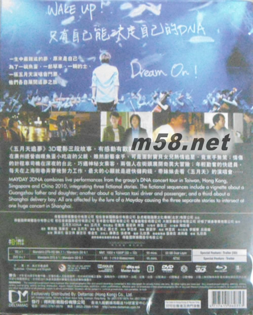 五月天追夢 3D+2D Blu-ray及DVD套裝 (Blu-ray) (限量珍藏版) (香港版)(m58.net) 臺灣天團五月天耗資逾億臺幣,兩年來橫跨新加坡、香港、北京、上海、臺北、臺中、桃園等地,共動用近50位攝影師拍攝3D演唱會片段,再配合三段故事和3D攝制技術,打造華人史上第一部演唱會現場表演結合故事劇情演出的3D實拍電影《五月天3DNA追夢》。故事以世界上最難追的票是五月天「五月天D.N.A.演唱會」為主,三個單元劇情由一張演唱會門票而起展開的追夢之旅,包括在廣州經營咖哩魚蛋小食店的父親(林雪飾)與熱情追星族的女兒、深夜在臺北里情傷的計程車司機(任賢齊飾)與一名神秘女乘客(劉若英飾)的大冒險故事、在上海勤奮的年輕快遞員每天努力工作,最大的心愿就是趕快存夠錢,帶妹妹去聽一場五月天的演唱會。
