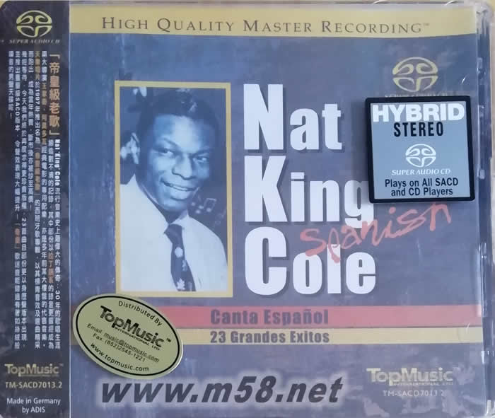 西班牙專輯 混合層立體聲Spanish Hybrid Stereo SACD(m58.net) 京?科爾1919年3月17日生于美國亞拉巴馬州的蒙哥馬利,在芝加哥長大。科爾12歲就在教堂里演奏管風琴,同時還參加唱詩班。他的3個兄弟埃迪、弗雷德和伊薩克,后來也成了爵士樂音樂家。1936年,科爾離開了由哥哥埃迪?科爾領導的“純粹搖擺者”樂隊,來到洛杉磯,領導了一支專為時事諷刺劇《曳步前行》配樂的樂隊。1937年,科爾組建了一支自己的三重奏,為調節氣氛,科爾在演奏間隙還不時唱一首老歌,結果超出了他的想象,觀眾需要更多的歌曲,于是他開始重視演唱,直到1940年,他們才獲得機會為迪卡唱片公司錄音。 40年代,科爾錄制了數量巨大而且十分精彩的爵士樂唱片,其中包括1944年由萊斯特?楊、伊利諾伊?雅克和第一爵士管弦樂團擔任特色樂師的音樂會和為國會大廈唱片公司錄制的為數眾多的唱片選曲。抖爾在演唱了非常流行的《自然的男孩》和《圣誕之歌》后,又把主要的精力花在了鋼琴演奏上。1949年,科爾演唱的歌曲《蒙娜麗莎》對波普爵士樂產生了巨大的影響,從此一舉成名并進入了著名爵士樂歌星的行列。1950—1960年期間,科爾的大部分錄音都是流行民謠。科爾雖然在演奏方面的才華幾乎要被演唱方面的成就所掩蓋,但他仍然具有精湛的演奏技巧。1956—1957年期間,他定期正電視節目中的表演,仍然保持了較高的水平。1965年2月25日,科爾在加利福尼亞州圣莫妮卡被肺癌奪去了生命,年僅46歲。