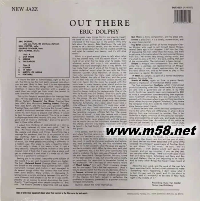 價格為估,以實到貨為準! OUT THERE 爵士四重奏(薩克斯、大提琴、貝斯、鼓) 黑膠(m58.net) 爵士樂歷史上的全才,他能吹單簧管、低音單簧管、高音薩克斯風和長笛,演奏風格雖然擺脫了傳統爵士樂尤其波普曲風的旋律結構,但卻并非朝前衛難懂一去不返,他的吹奏利索、自由、干勁十足;專輯所體現的實驗態度、自由與即興的演奏,都在向傳統的爵士發起挑戰。 Eric Dolphy, alto sax, flute, Bb & bass clarinets Ron Carter, cello George Duvivier, bass Roy Haynes, drums