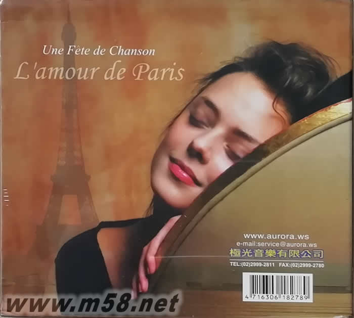 嚴選香頌: 花都情歌 慾望天堂 香頌夜巴黎 香榭大道 美好年代 Une Fete de Chanson-L`amour de Paris (4CD):(m58.net) 古老留聲機 傳來裊裊香頌樂韻 彷彿墬入了三O年代,夜夜笙歌,繁華如夢的璀璨巴黎 古老留聲機里傳來裊裊香頌樂韻, 彷彿墜入了三○年代夜夜笙歌、繁華如夢的璀燦巴黎… 置身塞納河畔的靜僻巷道里,褪色的紅地磚、舊椅老橡木的味道喚醒過往記憶,古老留聲機里傳來女伶艾蒂絲.皮亞芙唱著「玫瑰人生(La Vie En Rose)」的裊裊歌聲,不同的時空、帶點哀傷的性感嗓音依舊深情,訴說著當時繁華花都男女的浪漫與迷惘,彷彿回到三○年代戰后的巴黎,不曾間段的愛戀故事發生花都的巷道中,輕啜一口杯中濃郁的咖啡,閉眼凝神讓靈魂飄浮在花都的充滿情愫空氣中,再次徜徉在巴黎最輝煌的年代。分不清是身處在三○年代夜夜笙歌、繁華如夢的璀燦巴黎,還是二十一世紀的今日… 極光為您嚴選四張香頌專輯,感受Edith Peaf、Tino Rossi、Josephine Baker、Yvette Giraud、Danielle Vidal、Cyntia M.等香頌名伶獻唱La Mer (海)、J’Ai Deux Amour (我們兩個最愛)、Plaisir D’amour(愛的喜悅)等陳年香頌,字語里傳達不同的美麗與哀愁,讓繚繞的音符帶您魂縈夜花都。