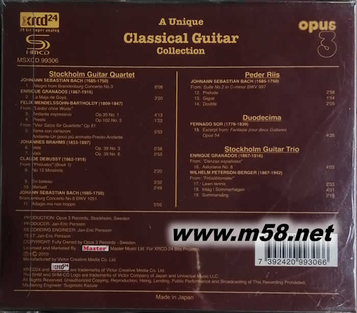 斯德哥爾摩吉他四重奏 - 獨一無二的古典吉他名曲選 A UNIQUE CLASSICAL GUITAR COLLECTION (OPUS 3 發燒工作室) XRCD+SHMCD專輯背面圖片