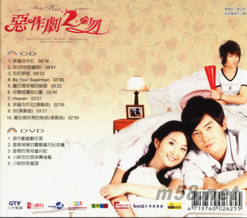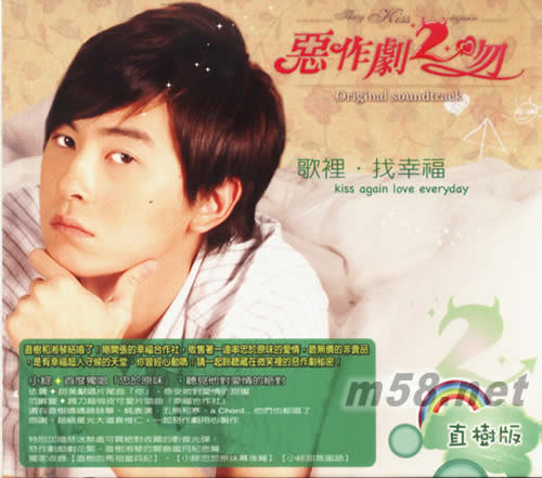 惡作劇之吻2 電視原聲帶(直樹版)(m58.net) 依晨★甜美線唱片尾曲「你」 感受她對愛情的甜蜜 小綜★首度獻唱「忠於原味」 聽見他對愛情的絕對 范曉萱★跨刀超俏皮可愛片頭曲「幸福合作社」 還有直樹媽媽趙詠華、純表演、五熊和寒、a Chord他們也都唱了 特別感謝★超級星光大道袁惟仁 一起惡作劇用心製作 史上超強收視美麗童話愛情偶像劇 一次推出兩版 湘琴版 直樹版 直樹版 特別加贈惡迷無處可買絕對收藏的影音光碟DVD: 惡作劇戲劇花絮、直樹湘琴的關島蜜月紀念篇、 獨家收錄【直樹的馬祖當兵記】【小綜忠於原味幕后篇】【小綜甜言蜜語】