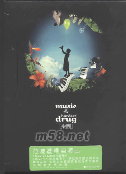 MUSIC IS MY HARDEST DRUG 樂園DVD(m58.net) 范曉萱新自演出 5首MTV比賽得獎影片——演唱會的歡笑與眼淚幕后花絮——收錄從未看過的瘋狂搞笑范曉萱。范曉萱私房相薄。