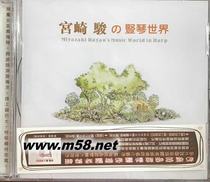 宮崎駿の豎琴世界Miyazaki Hayao’s Music World in Harp(m58.net) 首張宮崎駿動畫音樂豎琴專輯 兩大英國得獎豎琴演奏家精心改編/演奏宮崎駿動畫音樂 收錄多首耳熟能詳宮崎駿動畫主題曲及插曲 英國頂級錄音室製作,加上兩大豎琴家亮麗演繹,帶給您全新感受的宮崎駿動畫配樂 發燒界傳奇《阿淘的歌》錄音室重新混音,豎琴演奏動態鮮明,空間感十足