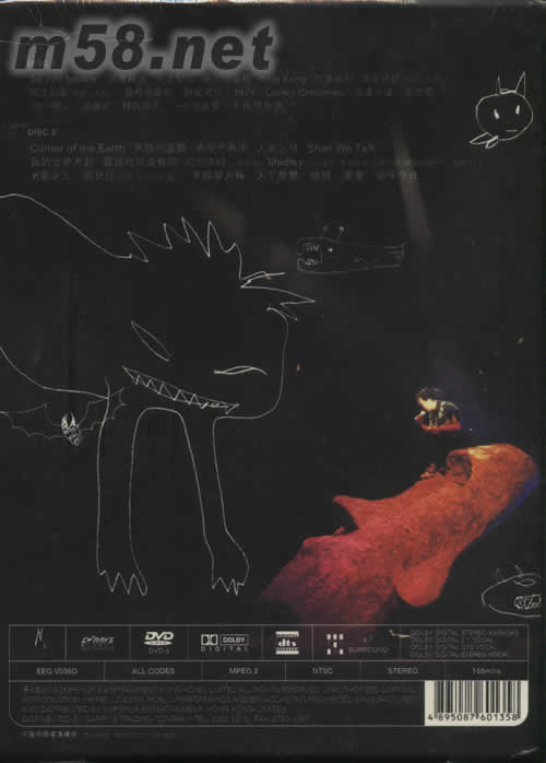 Third Encounter Live KARAOKE DVD DTS版(m58.net) DVD-9 陳奕迅一連七場的《Third Encounter》演唱會于2003年2月16日在香港紅磡體育館開鑼,顧名思義是在香港第三度舉行演唱會。Eason穿上一條黑色長褸,以一段意大利歌劇「Se Voul Ballare」作開場,之后才演繹自己的首本名曲。這次個唱的舞臺設(shè)計成一個廢墟。 2002年Eason 于樂壇上之成績大家有目共睹,單是今年占據(jù)各大媒體流行榜的大熱之作己數(shù)之不盡。Eason對是次演唱會可謂一絲不茍,希望能予人耳目一新之感,還以「第三類接觸」作主題,望能將另一個Eason帶給觀眾。
