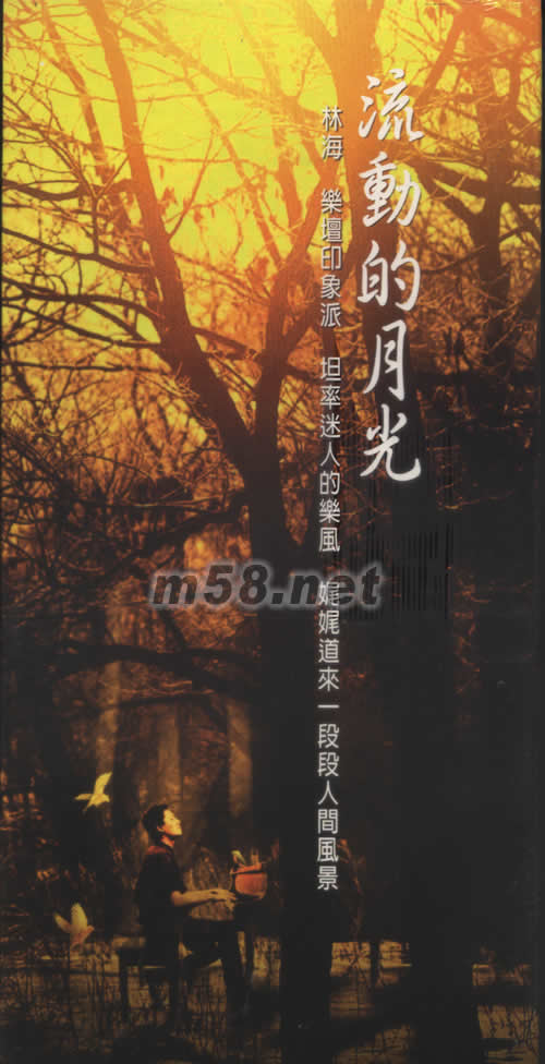 流動的月光(套裝)(m58.net) 林海,極富才氣及聲望的中國當代鋼琴家,四歲半踏入這個領域,十二歲接觸Jazz,二十歲代表中國參加范·克萊本鋼琴(Van Cliburn)大賽。游藝於古典、New Age、現代、爵士多風格之間;乾凈、空靈、溫暖、恬靜、自然的創作風格,流露淡淡的文學況味。作品一問世,不僅樂評贊譽有佳,銷路也一路上揚,樂評人說他是右手東方、左手西方的天才音樂家。飄灑的才情,使他成為創作樂壇的一聲驚嘆。