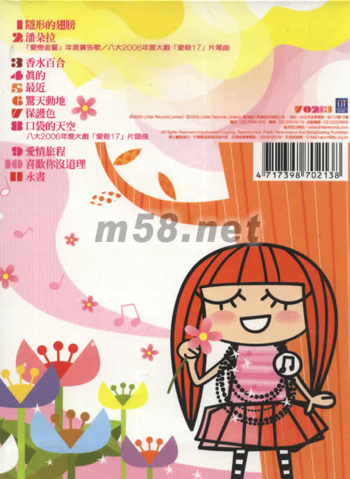 01. 隱形的翅膀 02. 潘朵拉 -[愛戀金誓]年度廣告歌/八大2006年度大戲[愛殺17]片尾曲 03. 香水百合 04. 真的 05. 最近 06. 驚天動地 07. 保護色 08. 口袋的天空 -八大2006年度大戲[愛殺17]片頭曲 09. 愛情旅程 10. 喜歡你沒道理 11. 永晝