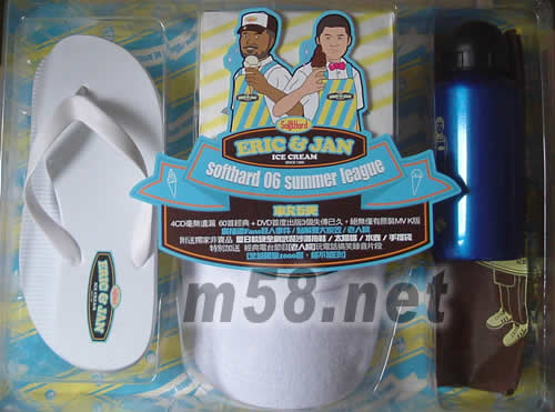 軟硬天師(大禮盒裝)(m58.net) 贈品:杯子、帽子、拖鞋 鞋:長25.5厘米 水杯:長19厘米 盒子整體大小:45:35:9 4CD 毫無遺漏 60首經典+DVD 首度出版3個失傳已久,絕無僅有原裝MV K版 廣播道FANS殺人事件/點解要大家笠/老人院 附送獨家非賣品 夏日軟硬全副武裝沙灘拖鞋/太陽帽/水壺/手提袋 特別加送 經典電臺節(jié)目[老人院]玩電話搞笑錄音片段 [全城限量1000套,絕不加印!]