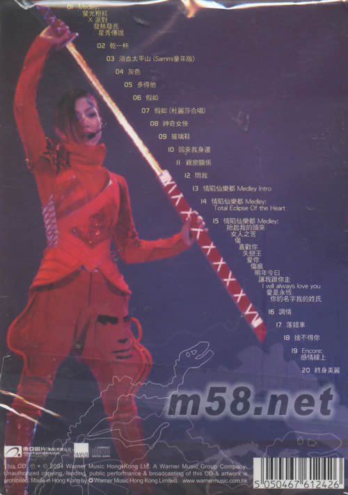 價(jià)格為估,以實(shí)到貨為準(zhǔn)! Sammi VS Sammi 鄭秀文 04演唱會 (DSD)(m58.net) 一連七場的《Sammi vs Sammi鄭秀文 04演唱會》于2004年7月21日在香港紅館正式舉行,鄭秀文(Sammi)已有三年沒有踏上紅館舞臺,今次重踏舞臺,掀起外間佷大回響,全場爆滿,觀眾的反應(yīng)亦十分熱烈,而Sammi亦施展渾身解數(shù),以回饋歌迷的不離不棄。除了「發(fā)熱發(fā)亮」、「星秀傳說」和「X派對 」等勁歌熱舞外,她亦唱出不少膾炙人口的動心情歌,「親密關(guān)系」、「調(diào)情」及「終身美麗」等精選歌共冶一爐。 此外,如最新推出的《Sammi vs Sammi》歌集一樣,Sammi是次演唱會的一大特色是翻唱不少經(jīng)典作品,包括楊千嬅的「抬起我的頭來」、已故梅艷芳的「女人之苦」、張學(xué)友的「你的名字我的姓氏」,每一句也令在場的觀眾聽得如癡如醉!各位錯過了Sammi這次演唱會的朋友,《Sammi VS Sammi 鄭秀文 04演唱會》CD現(xiàn)已有售,全碟DSD制作!