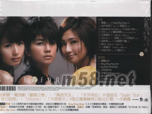 華語樂壇最完美女聲天團S.H.E 2003-2006最精采音樂旅程一次擁有 5首新歌+13首最強主打歌+32頁精美寫真歌詞本+超值DVD(7首MV+SUPER MODEL舞蹈教學)