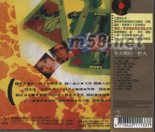 巨星精選(一)冬天里的一把火 (留聲經典復刻版系列)(m58.net) 任誰的心中, 都會想要緊緊抓住這樣的一首歌, 還好,我們留下了這些聲音。 環球上華留聲經典復刻版系列 精選寶麗金、綜一、華星、環球、上華...等等時期 經典專輯。 現在,低價回饋給深愛音樂的你。