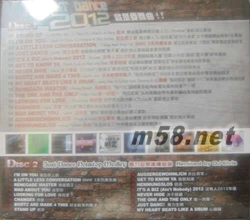 CD 2 Just Dance Nonstop Medley 舞力全開連續(xù)組曲 1.I’m On You – 我在你上面 2.A Little Less Conversation - BMW 3系列廣告曲 3.Renegade Master –叛變霸王 4.Mad About You – 迷戀你 5.Looking For Love – 尋找愛 6.Changes - 改變 7.Bootz Are Made 4 This – 好走耐穿的靴子 8.Stand Up - 起來 9.Außergewöhnlich – 非比尋常 10.Get To Know Ya -我就知道 11.Hemmungslos – 自由 12.It’s A Biz (Ain’t Nobody) 2012 - 沒有人2012年版 13.Never Hide – 決不隱藏 14.The One And The Only – 唯一的唯一 15.Just Dance – 舞力全開 16.My Heart Beats Like A Drum – 心蹦蹦
