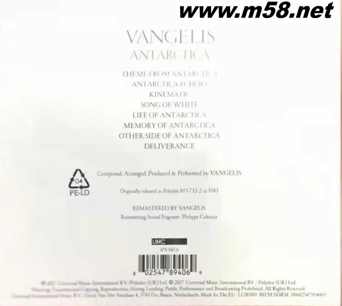 南極物語 2016版 ANTARCTICA REMASTERED BY VANGILIS專輯背面圖片