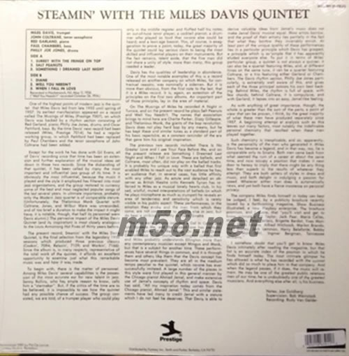 STEAMIN WITH THE MILES DAVIS QUINTET (爵士四重奏 小號、薩克斯、鋼琴、貝斯) 黑膠專輯背面圖片