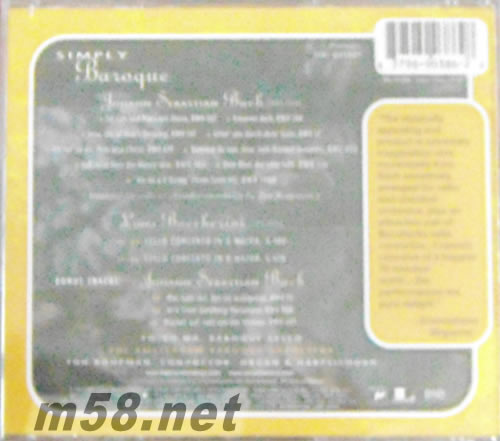 SIMPLY BAROQUE(m58.net) 請點(diǎn)看產(chǎn)品正、背面大圖 國際頂尖的旅美華裔大提琴家馬友友(Yo-Yo Ma),馬友友1955年生于法國巴黎,4歲起由父親啟蒙學(xué)習(xí)大提琴,并和家人遷居紐約。之后于茱麗亞音樂院師事李納德-羅斯(Leonard Rose)。1976年,他從哈佛大學(xué)畢業(yè),取得人類學(xué)學(xué)位,為他開啟傳統(tǒng)音樂院教育外的另一扇窗。馬友友與妻子育有一對兒女。 目前馬友友使用兩把的樂器分別為1733年制Montagnana大提琴及1712年制Davidoff Stradivarius大提琴。 馬友友為SONY新力古典的專屬音樂家,錄制過近50張專輯風(fēng)格不一(曾獲13次葛萊美獎),顯示他的音樂興趣層面之廣。除了古典音樂的大提琴曲目,他也錄制許多由他首演的新作品及專為他所寫的樂曲。馬友友亦經(jīng)常為經(jīng)典著名的華人電影配樂。 在第77屆奧斯卡頒獎禮的現(xiàn)場,馬友友表演了大提琴獨(dú)奏。