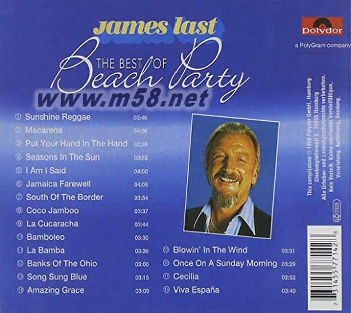 價格為估,以實到貨為準! Best of Beach Party(m58.net) 國的詹姆斯·拉斯特樂隊是世界著名的三大輕音樂樂隊之一。是世界樂壇歷史上唱片銷售最多的樂團。 創建人詹姆斯·拉斯特生于1929年。他擅于吸收各種音樂風格,如古典音樂、鄉村音樂、搖滾音樂、拉丁音樂等采華,同時又致力于各國民族音樂的發掘。他曾制作了俄羅斯、英格蘭、蘇格蘭、愛爾蘭、美國等音樂專輯。因此,詹姆斯·拉斯特樂團的音樂深受世界各地聽眾的歡迎,到80年代末,他已發表了50余個專輯唱片,總銷量達5千萬張。 詹姆斯·拉斯特樂團的音樂常常透露出歡樂愉快和樂觀的氣氛,有一種不可抗拒的吸引力和動人心弦的感染力。不管是古典音樂、流行歌曲或民族民間音樂,都滲透著他自己的風格。一般人認為,古典音樂比較艱深難懂,但他以現代手法加以改編后,古典樂曲便注入了一種新的生命力,而且以使人親近和了解的方式演奏出來,使從未聽過歐洲古典音樂作品的人,也能享受到古典音樂的美妙。平時,他經常與樂隊隊員研究、探討樂曲的改編和演奏方式,使隊員感到人人有份,從而達到協調一致,充分體現他的要求。