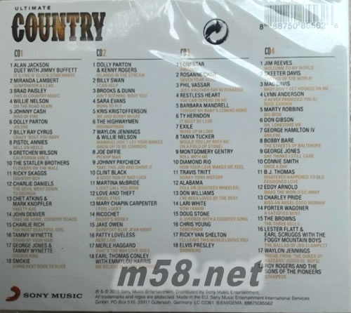 Ultimate...Country終極鄉(xiāng)村(4CD套裝歐版)(m58.net) ★Sony Music 全新<終極>系列4CD超級(jí)冠軍合輯★ ◎收錄包括貓王、約翰丹佛、威利尼爾森、強(qiáng)尼凱許、桃莉芭頓等巨星,最經(jīng)典的鄉(xiāng)村樂終極套裝