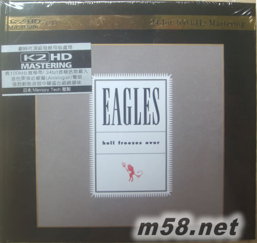 HELL FREEZES OVER (環球K2HD系列)(m58.net) Eagles樂隊是一支極具親和力的樂隊,走的是一條從“鄉村搖滾”到“純搖滾”的路線,曲調起伏不大,但顯得極為順暢,旋律相當優美,尤其是早期還經常使用一種班卓琴,極富鄉村特色。