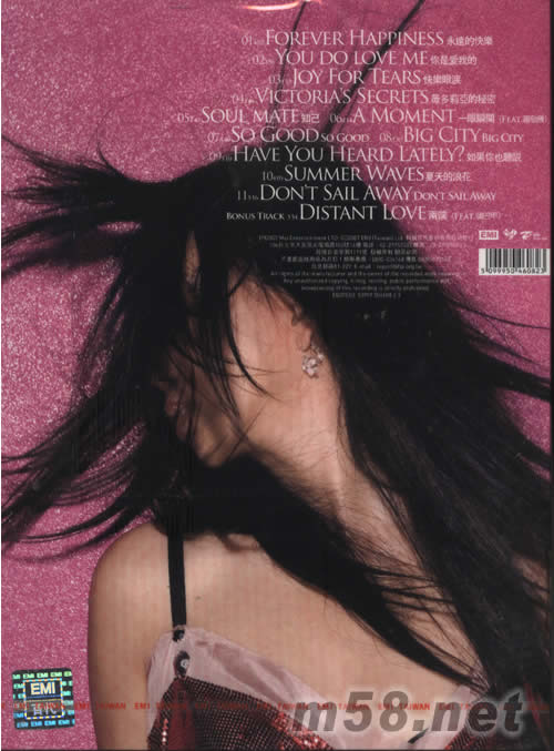 01. 永遠的快樂 02. 你是愛我的 03. 快樂眼淚 04. 薇多莉亞的秘密 05. 知己 06. A MOMENT 一眼瞬間(FEAT.蕭敬騰) 07. SO GOOD 08. BIG CITY 09. 如果你也聽說 10. 夏天的浪花 11. DON'T SAIL AWAY BONUS TRACK 兩端(FEAT.蒲巴甲)