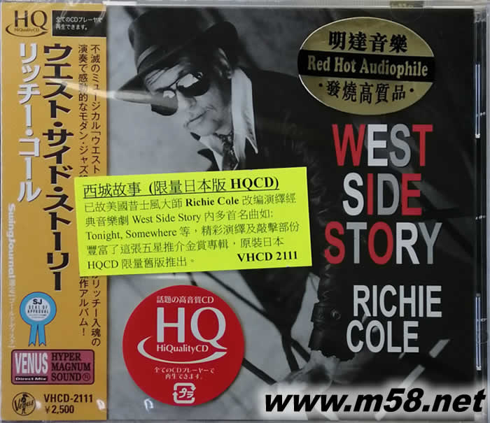 WEST SIDE STORY西城故事 RICHIE COLE HQCD 日本版(m58.net) 美國著名昔士風(fēng)大師Richie Cole得獎名盤,改編演繹Leonard Bernstein名作West Side Story內(nèi)多首名曲如: Something's Coming, Tonight, Somewhere及West Side Blues等,日本著名爵士品牌Venus Records以單層SACD推出,這個備受發(fā)燒友及音響界推崇的制式提供如在現(xiàn)場欣賞的靚絕音效。原裝日本豪華厚紙限量版。(只能以SACD機播放)