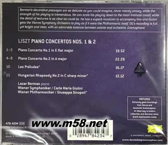 李斯特:第一、二號鋼琴協(xié)奏曲, 交響詩「前奏曲」, 第二號匈牙利狂想曲 LISZT PIANO CONCERTOS NOS.1 & 2 VIRTUOSO大師系列專輯背面圖片
