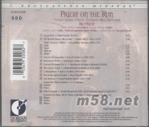 DOR93208 紅教士小品集 此專輯收錄多首優(yōu)美小品;DIEGO ORITZ的兩首西班牙舞曲、泰雷曼的A小調(diào)吉卜賽奏鳴曲 及SCHMELZER的布谷鳥奏鳴曲等。優(yōu)美特別之選擇,帶你進入另一天籟境界