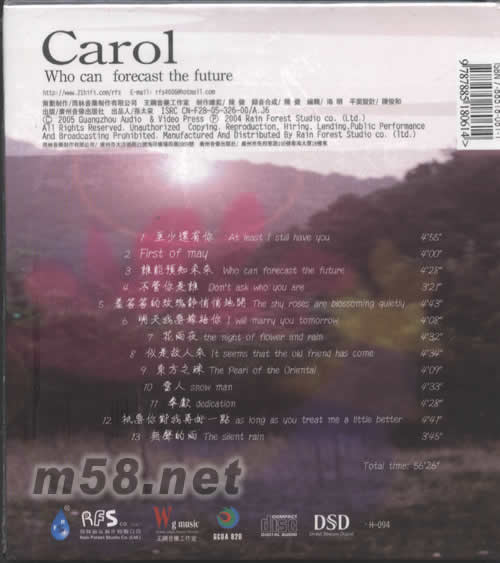 01. 至少還有你 02. First of may 03. 誰能預知未來 04. 不管你是誰 05. 羞答答的玫瑰靜悄悄地開 06. 明天我要嫁給你 07. 花雨夜 08. 似是故人來 09. 東方之珠 10. 雪人 11. 奉獻 12. 只要你對我再好一點 13. 無聲的雨