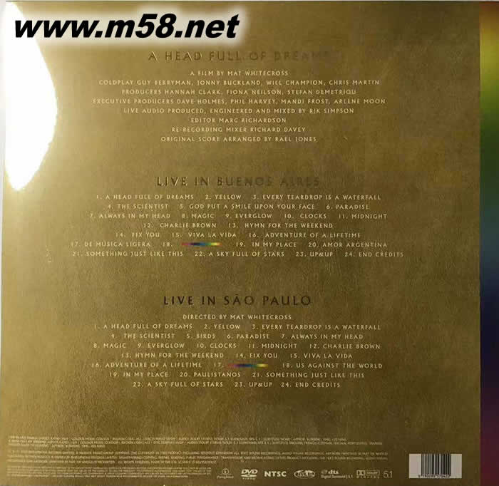 Disc: 1 1. A Head Full Of Dreams (Live In Buenos Aires) 2. Yellow (Live In Buenos Aires) 3. Every Teardrop Is A Waterfall (Live In Buenos Aires) 4. The Scientist (Live In Buenos Aires) 5. God Put A Smile Upon Your Face (Live In Buenos Aires) Disc: 2 1. Paradise (Live In Buenos Aires) 2. Always In My Head (Live In Buenos Aires) 3. Magic (Live In Buenos Aires) 4. Everglow (Live In Buenos Aires) Disc: 3 1. Clocks (Live In Buenos Aires) 2. Midnight (Live In Buenos Aires) 3. Charlie Brown (Live In Buenos Aires) 4. Hymn For The Weekend (Live In Buenos Aires) Disc: 4 1. Fix You (Live In Buenos Aires) 2. Viva La Vida (Live In Buenos Aires) 3. Adventure Of A Lifetime (Live In Buenos Aires) 4. De Música Ligera (Live In Buenos Aires) Disc: 5 1. Colour Spectrum (Live In Buenos Aires) 2. In My Place (Live In Buenos Aires) 3. Amor Argentina (Live In Buenos Aires) 4. Something Just Like This (Live In Buenos Aires) Disc: 6 1. A Sky Full Of Stars (Live In Buenos Aires) 2. Up&Up (Live In Buenos Aires) 3. End Credits (Live In Buenos Aires) Disc: 7 1. A Head Full Of Dreams (Live in S?o Paulo) 2. Yellow (Live in S?o Paulo) 3. Every Teardrop Is A Waterfall (Live in S?o Paulo) 4. The Scientist (Live in S?o Paulo) 5. Birds (Live in S?o Paulo) 6. Paradise (Live in S?o Paulo) 7. Always In My Head (Live in S?o Paulo) 8. Magic (Live in S?o Paulo) 9. Everglow (Live in S?o Paulo) 10. Clocks (Live in S?o Paulo) 11. Midnight (Live in S?o Paulo) 12. Charlie Brown (Live in S?o Paulo) 13. Hymn For The Weekend (Live in S?o Paulo) 14. Fix You (Live at Allianz Parque, S?o Paulo, 2017) 15. Viva La Vida (Live at Allianz Parque, S?o Paulo, 2017) 16. Adventure Of A Lifetime (Live in S?o Paulo) 17. Colour Spectrum (Live in S?o Paulo) 18. Us Against The World (Live in S?o Paulo) 19. In My Place (Live in S?o Paulo) 20. Paulistanos (Live in S?o Paulo) 21. Something Just Like This (Live in S?o Paulo) 22. A Sky Full Of Stars (Live in S?o Paulo) 23. Up&Up (Live in S?o Paulo) 24. End Credits (Live in S?o Paulo) Disc: 8 1. AHFOD