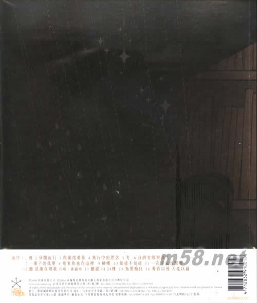 1-01. 飛機起飛聲 1-02. 分開旅行 1-03. 很愛很愛你 1-04. 飛行中的思念 1-05. 光 1-06. 我的失敗與偉大 1-07. 一輩子的孤單 1-08. 原來你也在這裡 1-09. 蝴蝶 1-10. 知道不知道 1-11. 一次幸福的機會 1-12. 聽 是誰在唱歌 1-13. 聽說 1-14. 24樓 1-15. 為愛癡狂 1-16. 黃昏以后 天亮以前