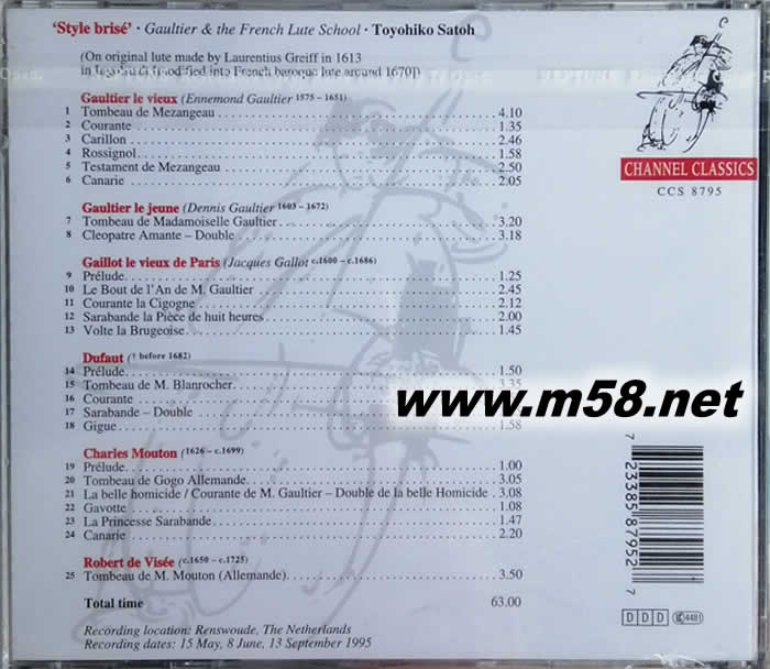 比尤埃拉琴系列第五集 TOYOHIKO SATOH 5 STYLE BRISE GARLTIER & THE FRENCH LUTE SCHOOL 西班牙琵琶專輯背面圖片
